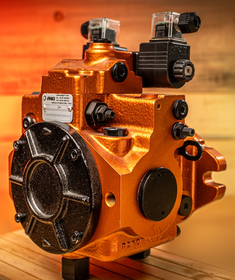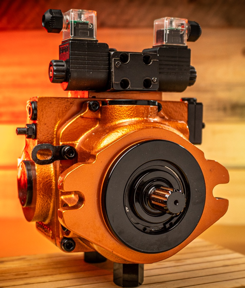La variazione di cilindrata avviene grazie alla rotazione di un piatto oscillante e andando oltre il punto di neutro si ottiene l’inversione del flusso.