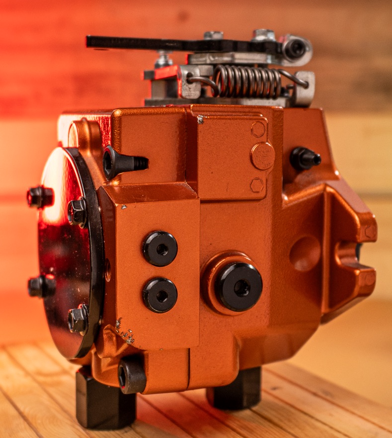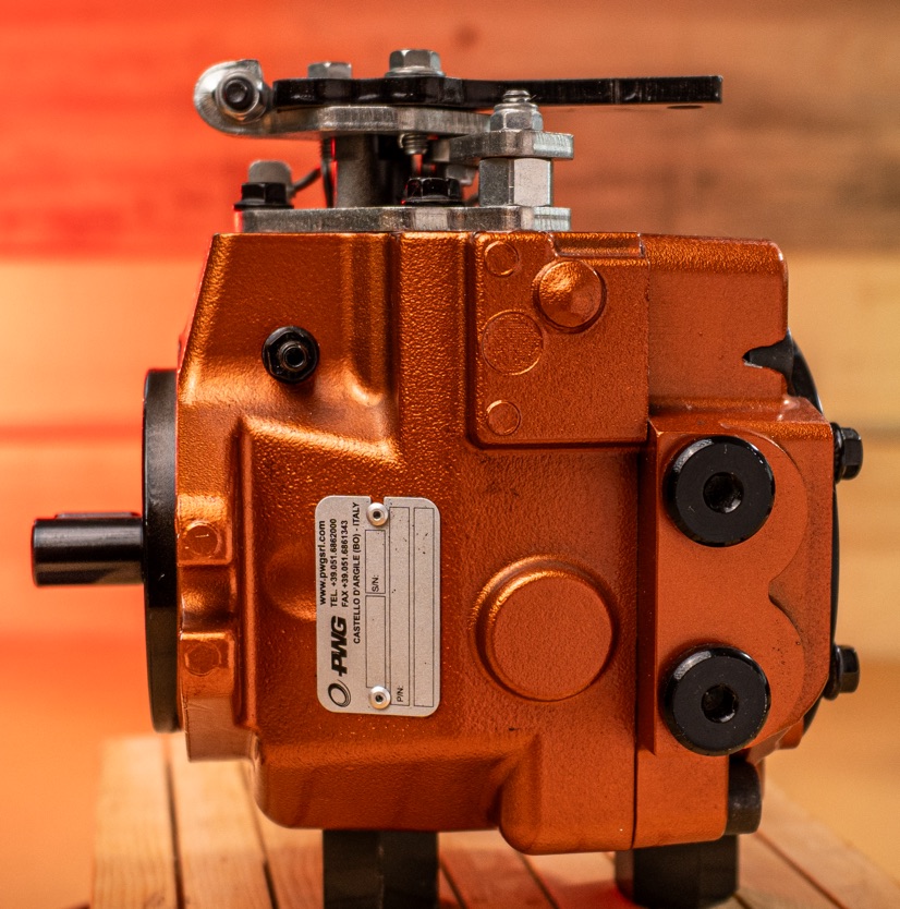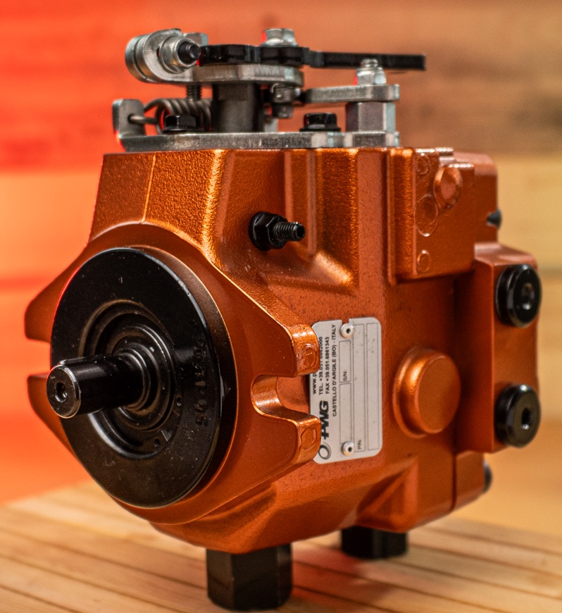La variazione di cilindrata avviene grazie alla rotazione di un piatto oscillante e andando oltre il punto di neutro si ottiene l’inversione del flusso.