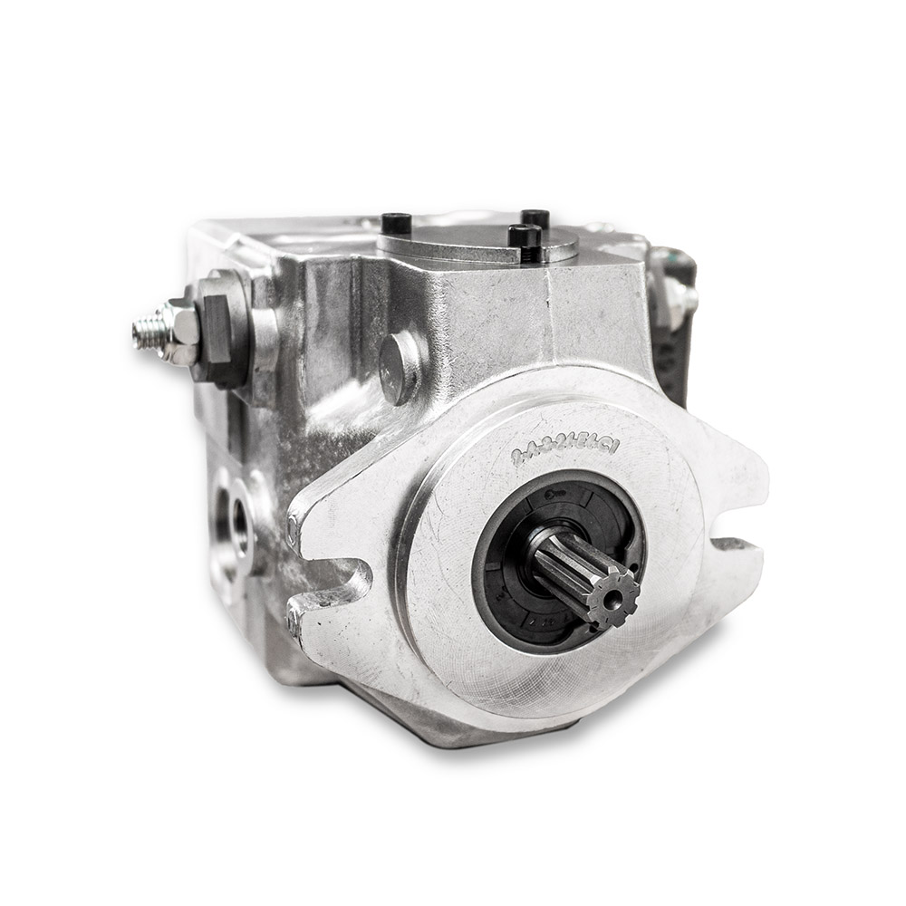 La variazione di cilindrata avviene grazie alla rotazione di un piatto oscillante e, andando oltre il punto di neutro, si ottiene l’inversione del flusso.