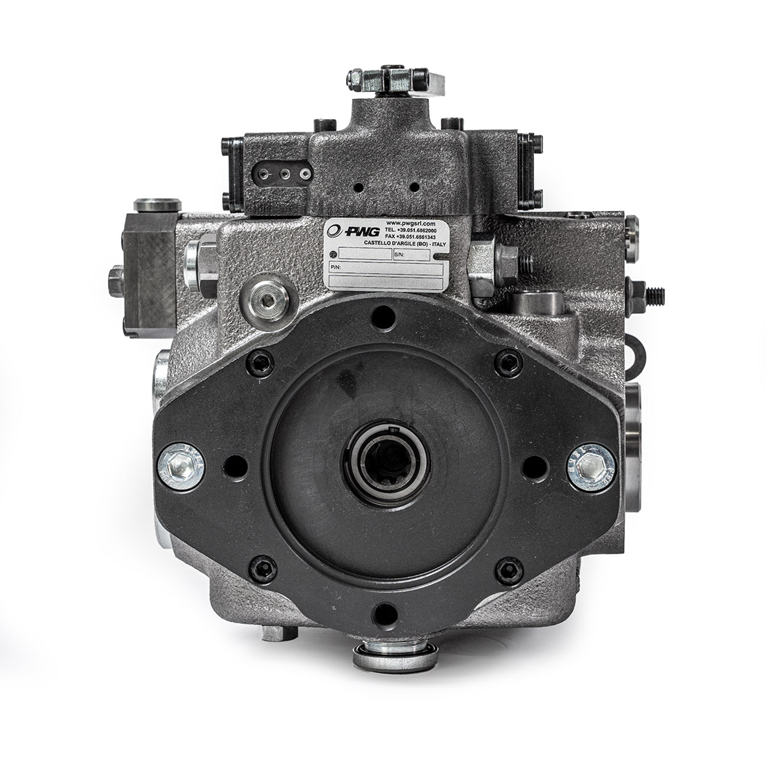 The W0 14-18 series includes variable displacement axial piston pumps designed for use in closed-loop circuits, featuring an aluminum housing and valve cover.