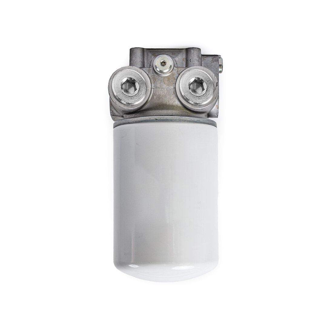 Special filter for hydraulic trasmission. Suction and return in only one filter with pressurization valve and mounting in line.