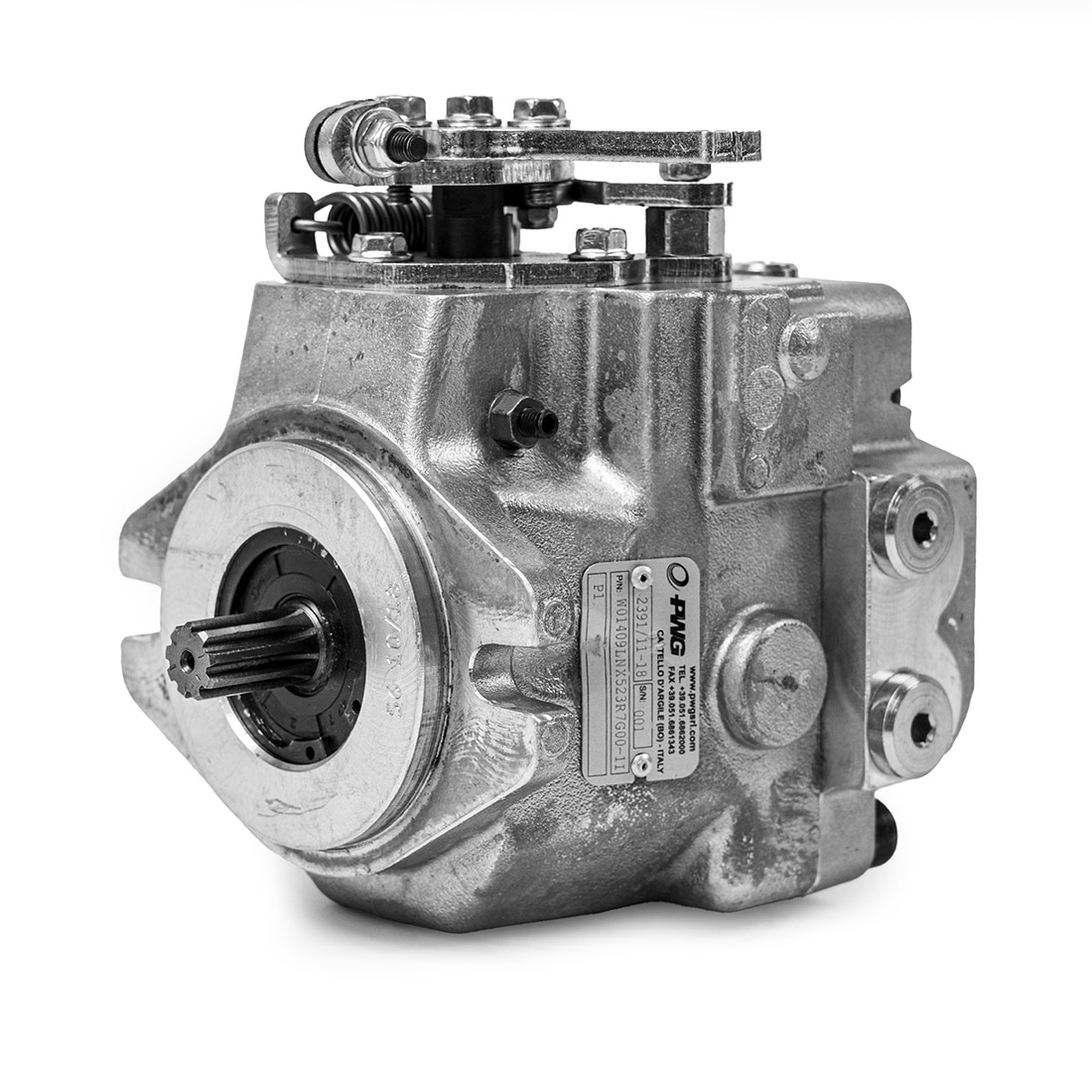 The W0 14-18 series includes variable displacement axial piston pumps designed for use in closed-loop circuits, featuring an aluminum housing and valve cover.